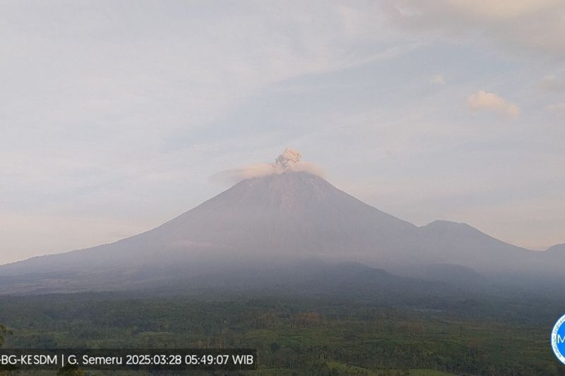 Gunung Semeru erupsi dengan letusan setinggi 400 meter di atas puncak pada Jumat (28/3/2025) pukul 05.48 WIB. ANTARA/HO-PVMBG